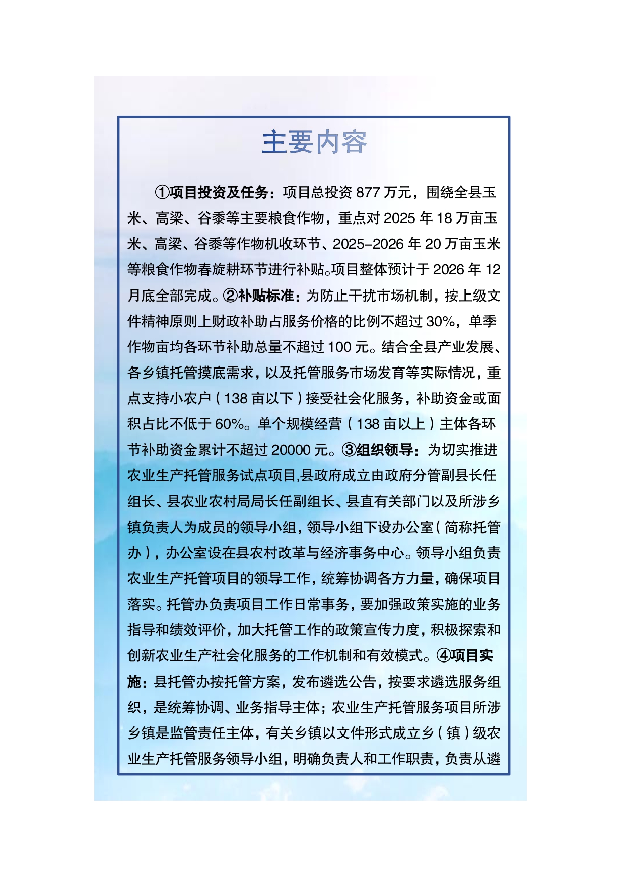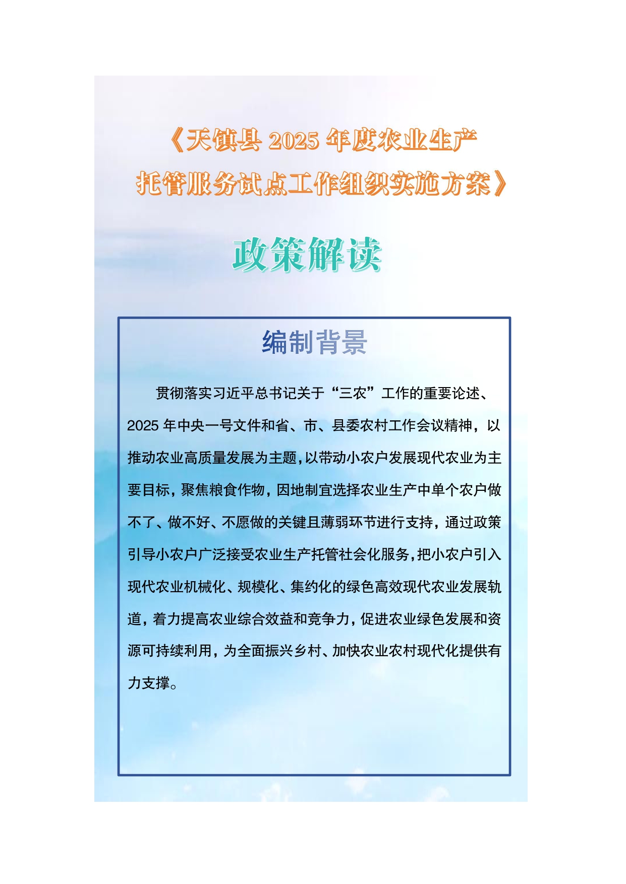 【圖解】關于《天鎮縣2025年度農業生產托管服務試點工作組織實施方案》的政策解讀